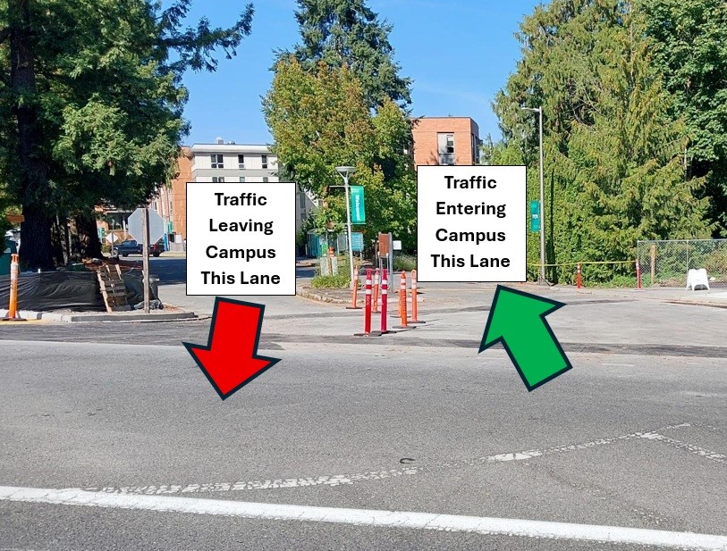 During this closure, a temporary ADA accessible sidewalk will be placed connecting the existing NW Innis Arden Way sidewalk and the campus sidewalk just inside the Main Gate.
