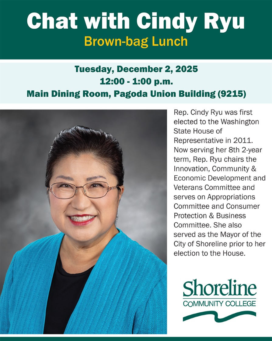 Representative Cindy Ryu was first elected to the Washington State House of Representatives in 2011. Now serving her 8th 2-year term, Rep. Ryu chairs the Innovation, Community & Economic Development & Veterans Committee, and serves on the Appropriations Committee and Consumer Protection & Business Committee. She also served as the Mayor of the City of Shoreline prior to her election to the House.